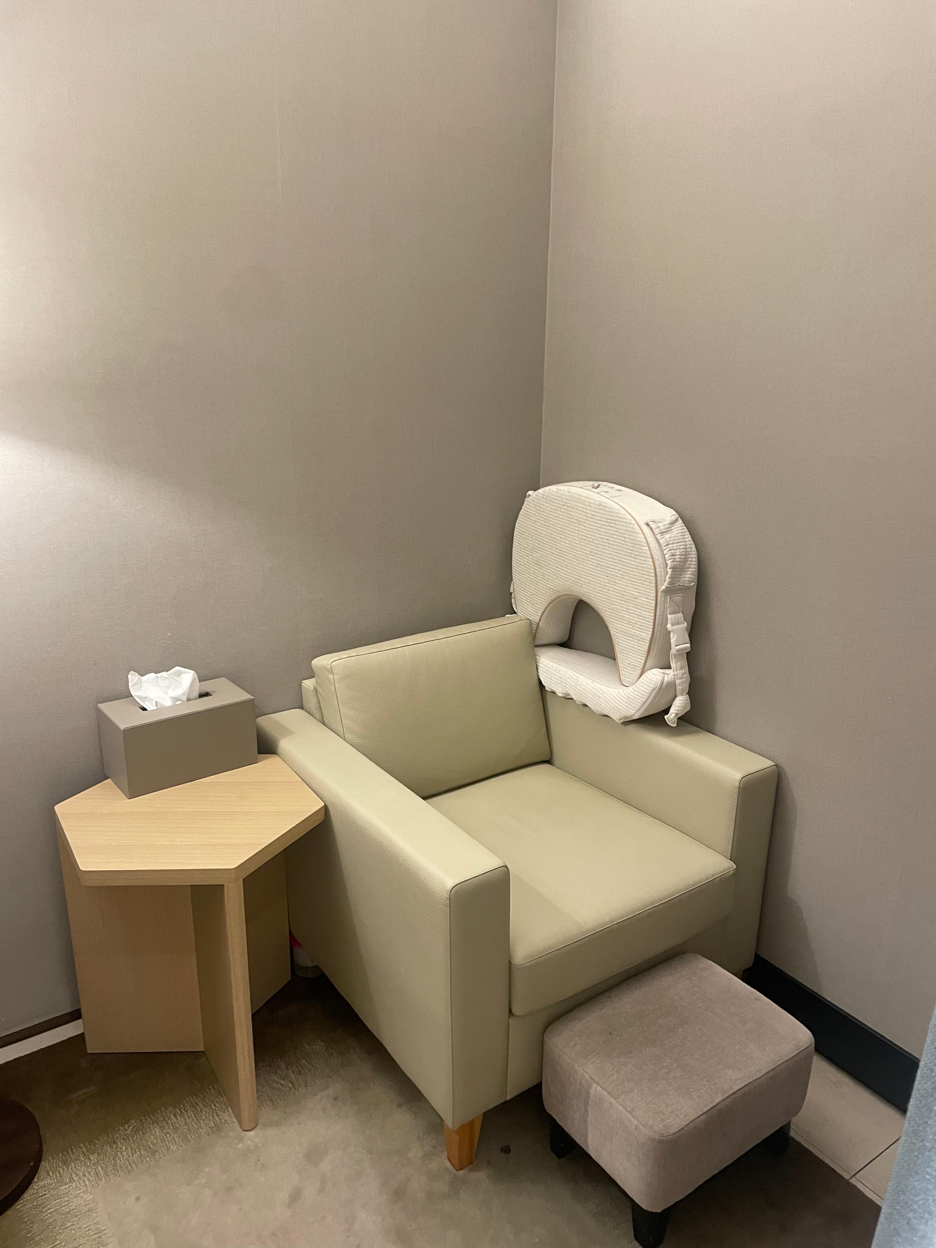 라운지 내부는 조용하고 차분한 분위기가 특징입니다. 전체적으로 밝고 깨끗한 공간에서 아이에게 수유를 하거나 이유식을 먹이기 좋았습니다. 공간 한켠에는 하이체어도 마련되어 있어 이유식을 먹이기 편리했는데, 의자는 안정감이 있어 아이를 앉히기에 부담이 없었습니다.