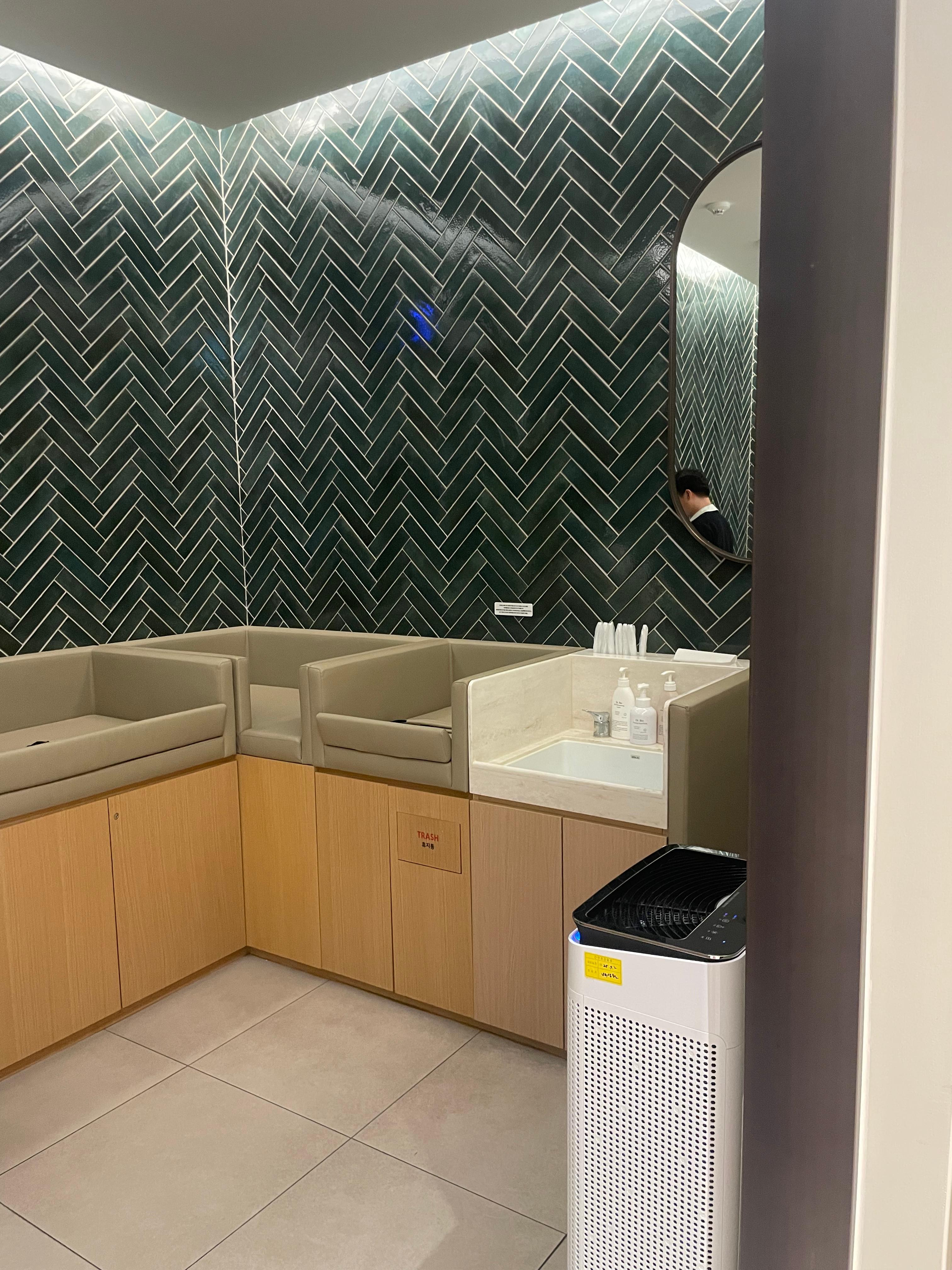 또한, 라운지 옆쪽에는 작은 키친 공간이 마련되어 있어 정수기, 전자레인지, 소독기, 분유포트까지 완비되어 있었습니다. 특히 분유포트는 다른 백화점 유아휴게실에서는 흔히 보기 힘든 시설이라 인상적이었습니다. 분유나 이유식을 준비할 때 매우 유용했고, 아이와 외출 시 큰 도움이 되었습니다.